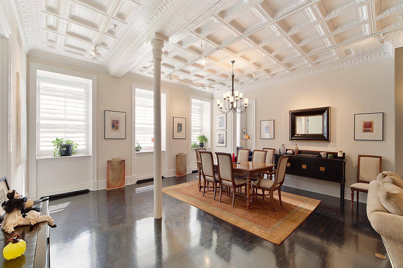 The interior doorways are replaced by arches with patterned architraves mounted on high antique columns refined to the ceiling.