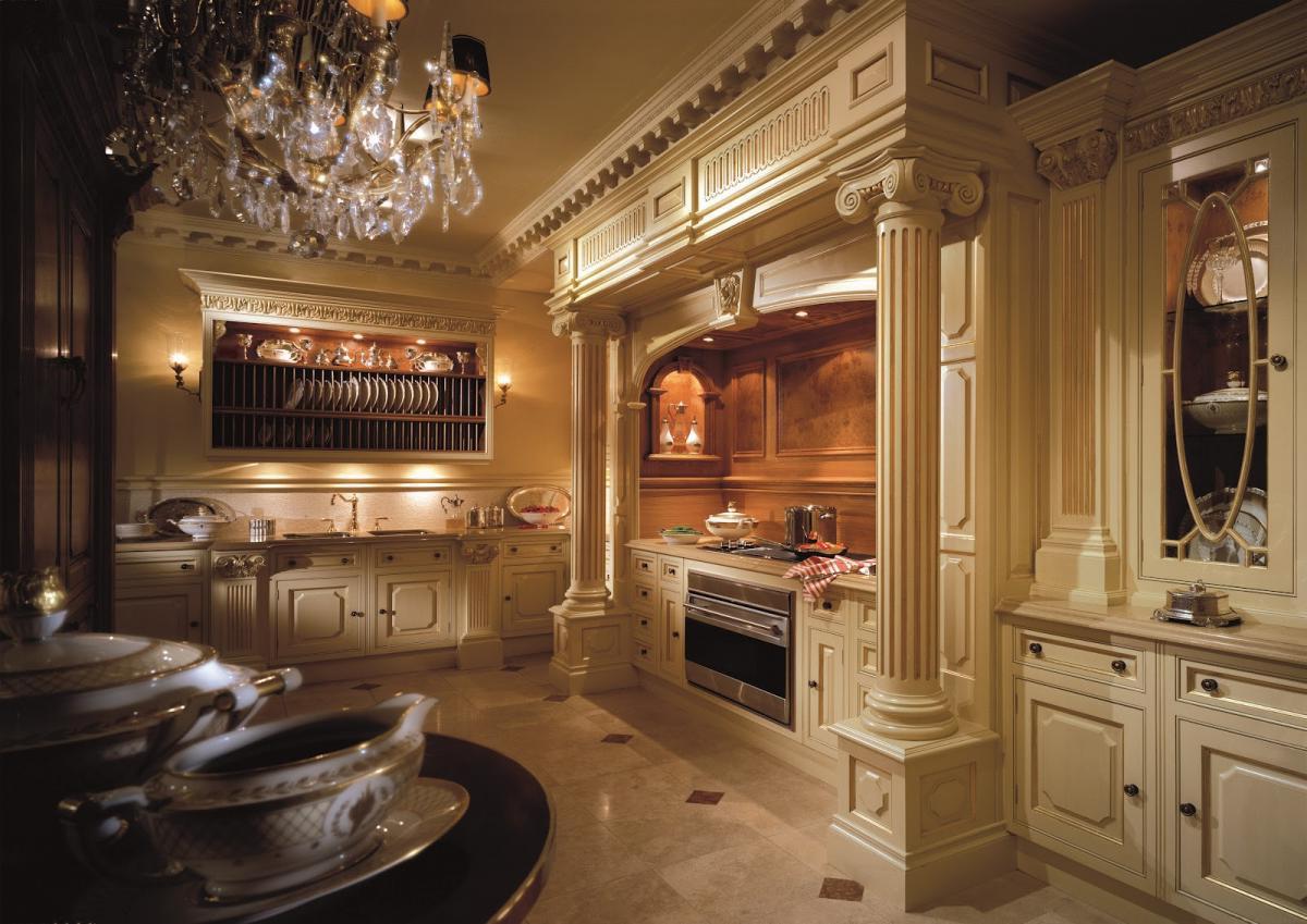 The bar of the kitchen space can have one reference point in the form of an antique column of an ionic order. In this case, it is possible to arrange the column both for the entire length (from floor to ceiling), and partially.