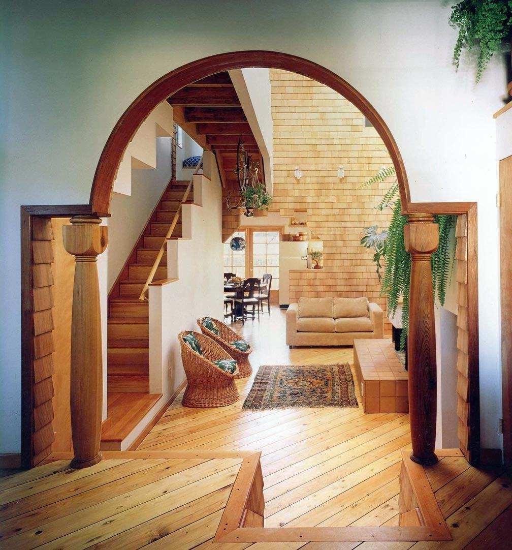 - Tree. Undoubtedly, a tree rightfully takes the first place in its beauty in colonnade use. Its structure is fascinating. From wood it blows with the naturalness and freshness of nature.