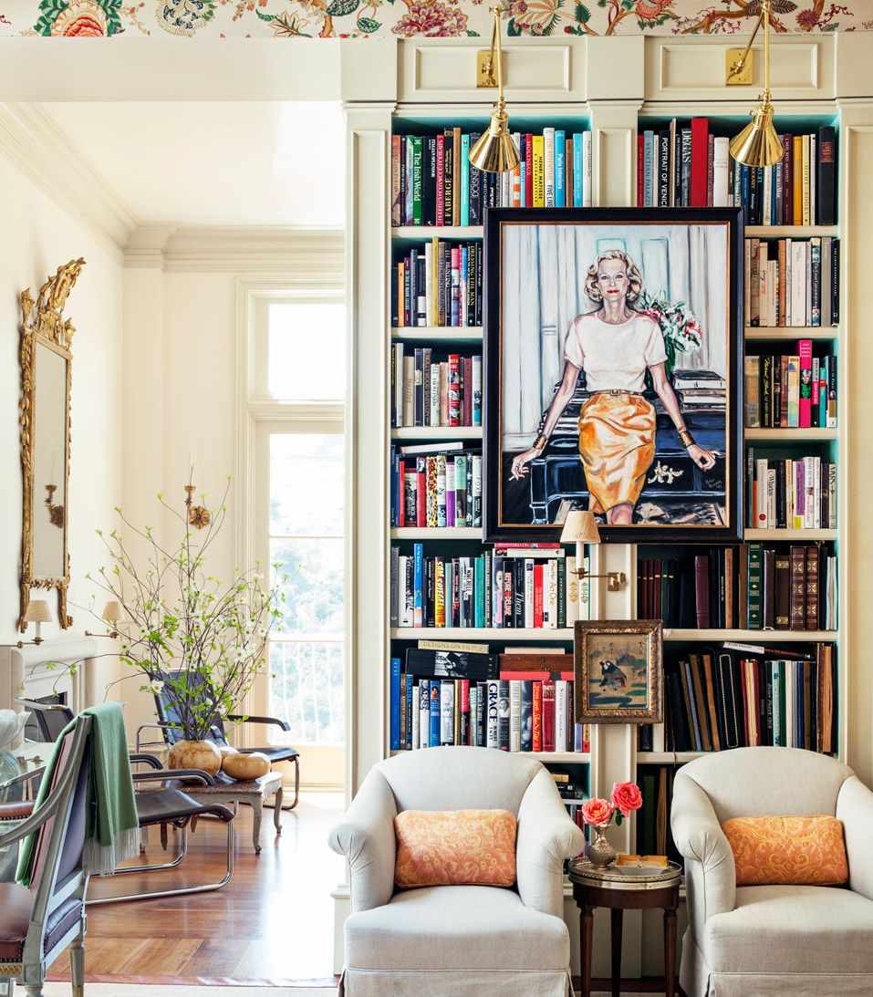 Decor items on the shelves give the room a cozy and romantic atmosphere.