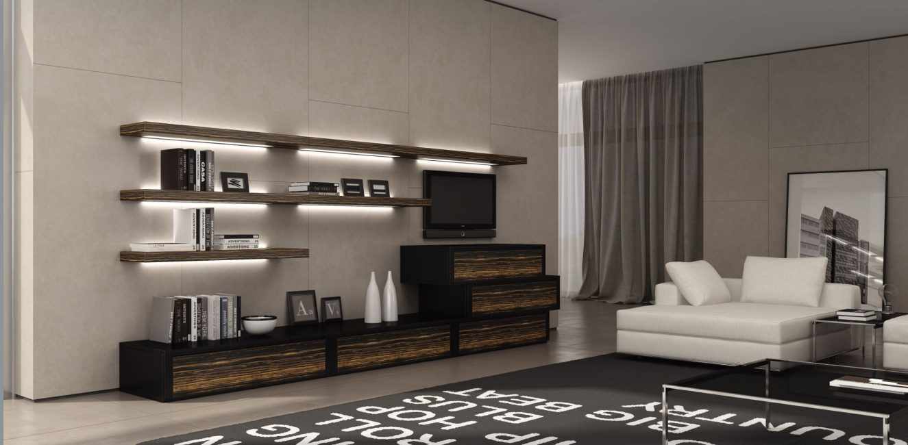 Shelves in the interior of the living room are an important component of decoration along with furniture, lighting and decor. Minimalism prevails in modern design: instead of bulky furniture walls, shelves or modules from shelves are preferred. They allow you to place all the necessary items without cluttering up the space.