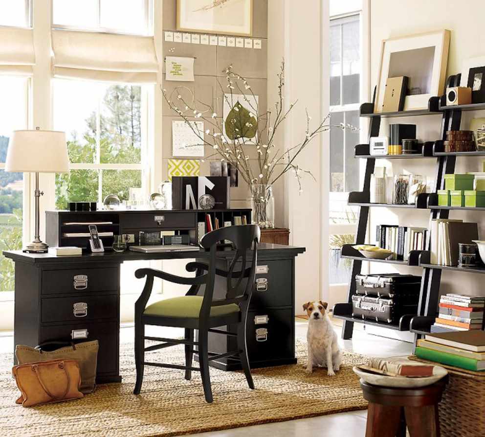 The presence in the office of the desktop makes it clear that documents, supplies for writing and work, other small items are hidden in it. |