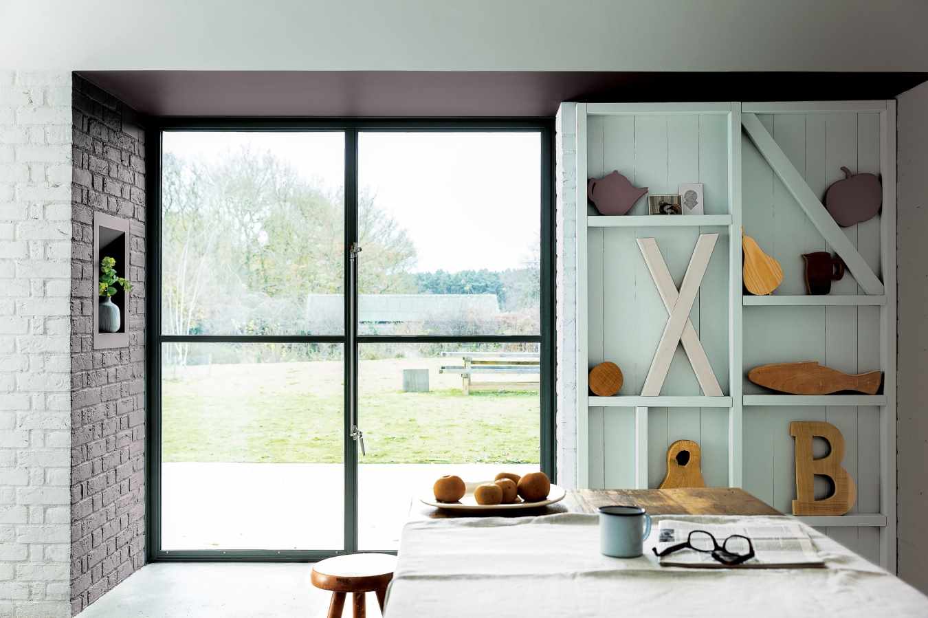 Hinged open shelves of light or vice versa dark shades (white, gray, blue or black) will look good. |