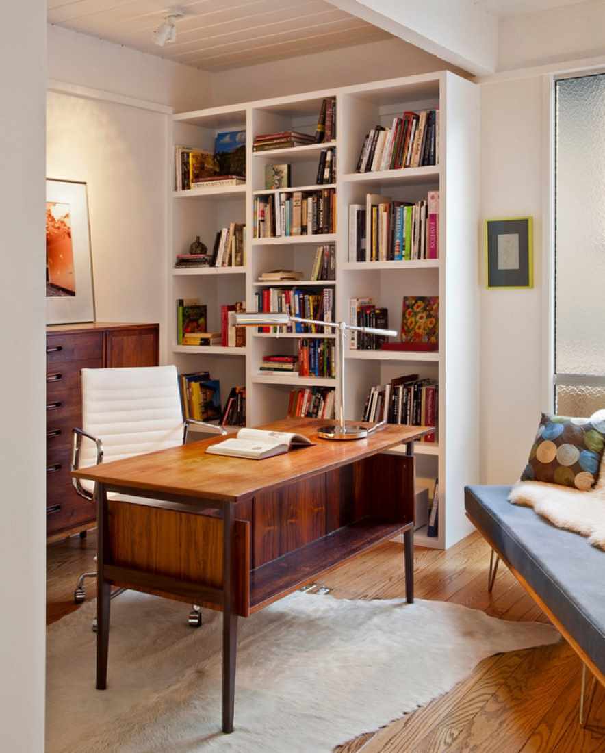 - Under the shelves you can take a place in the wall niches (if any). If you decorate them with lighting, the room will sparkle in a new way. It will also help to save more free space.