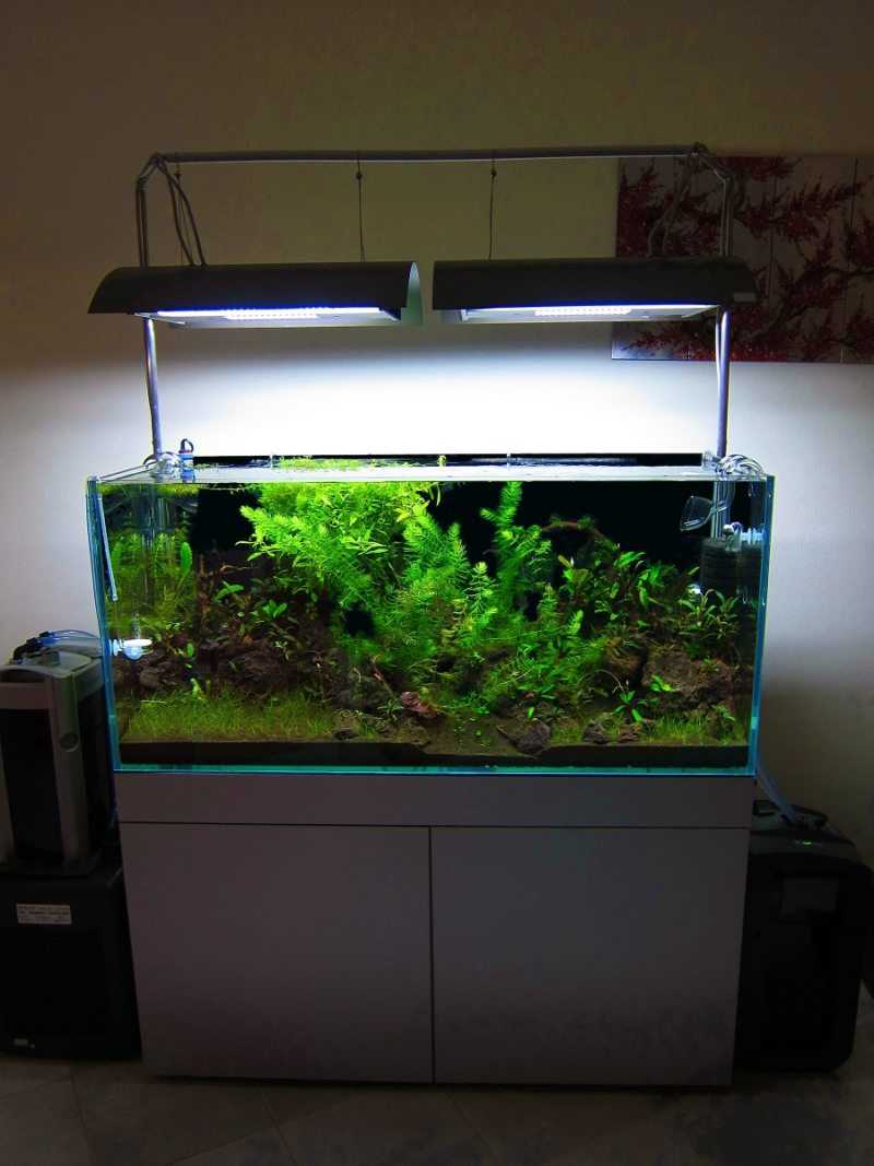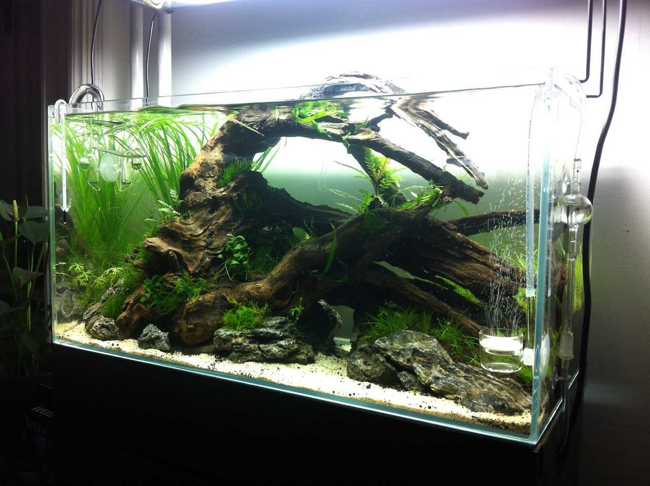 Such a volume of the vessel expands the boundaries of creativity. Here you can use different aquarium plants, decorating it in the Dutch style, or use a minimum of elements and create aquascaping in the manner of an ivagumi or zen garden.