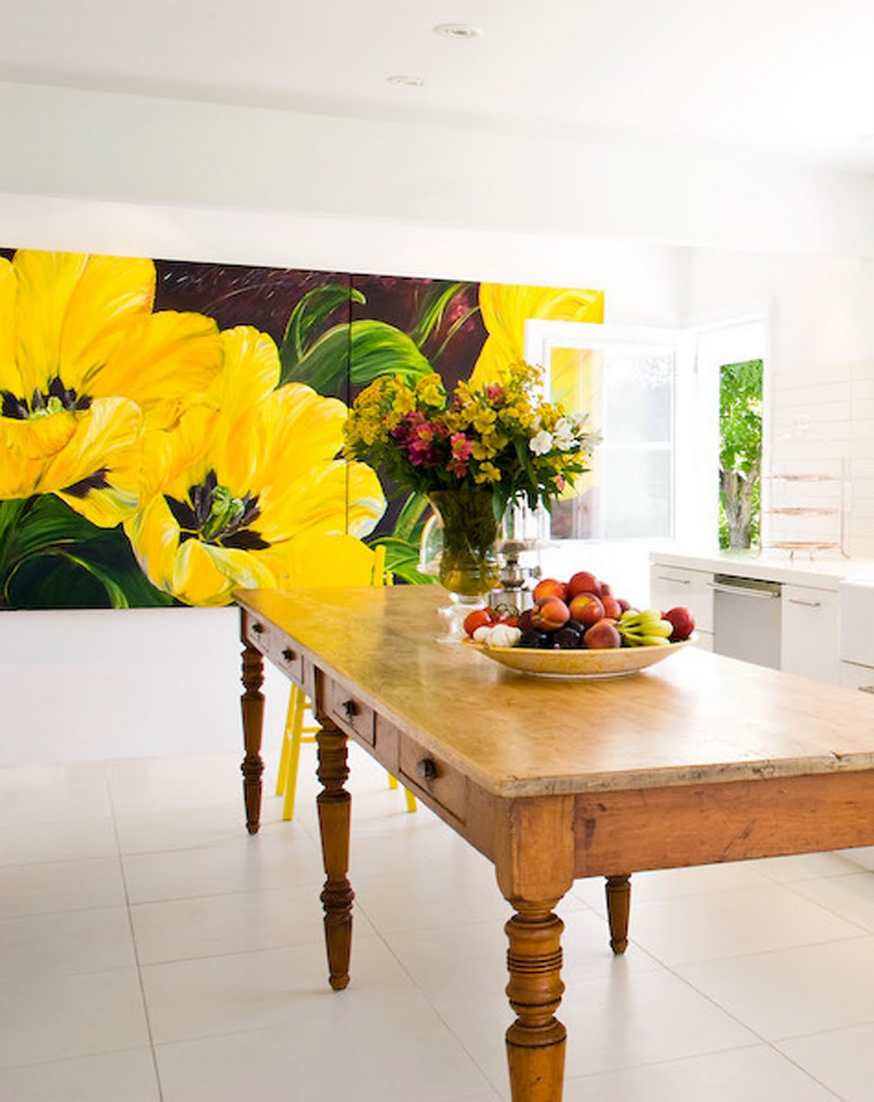 In the kitchen, any housewife wants to feel like a welcome woman, so it’s worth adding works with your favorite flower buds combined with bright juicy fruits.