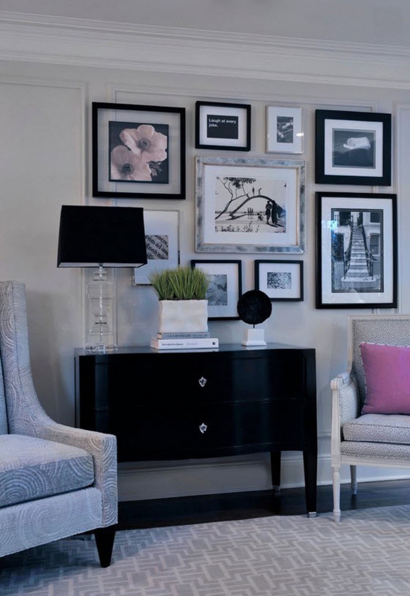 The design of the wall is created not only by the picture itself, but also by the frame in which it is enclosed.Most often there are white frames, but for each room you can choose individual frames: