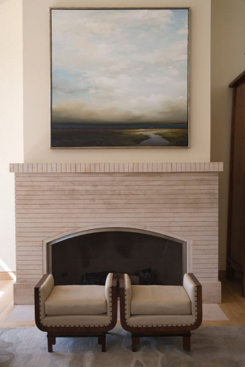 Canvas with traditional landscape in a Victorian style living room with modern elements