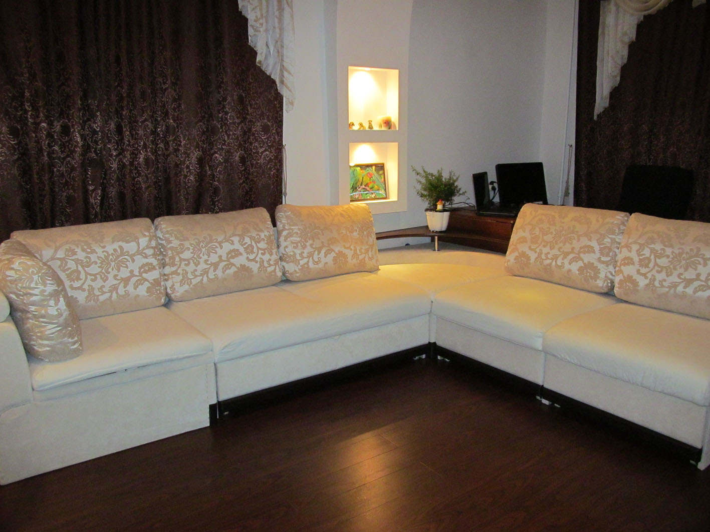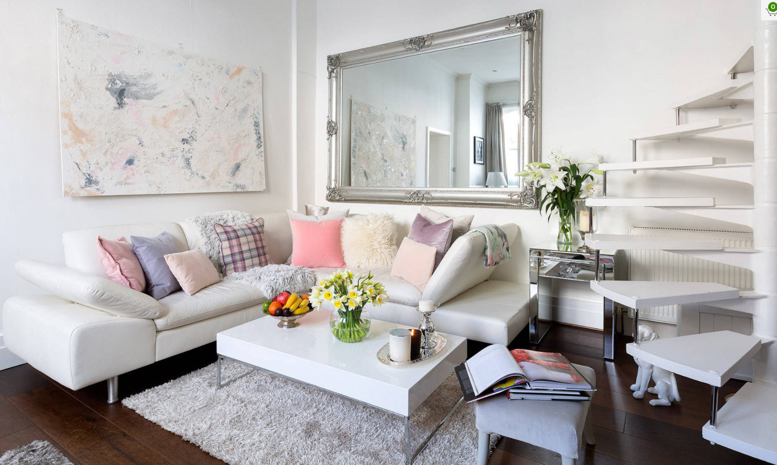 Equipping a living room with a corner white sofa