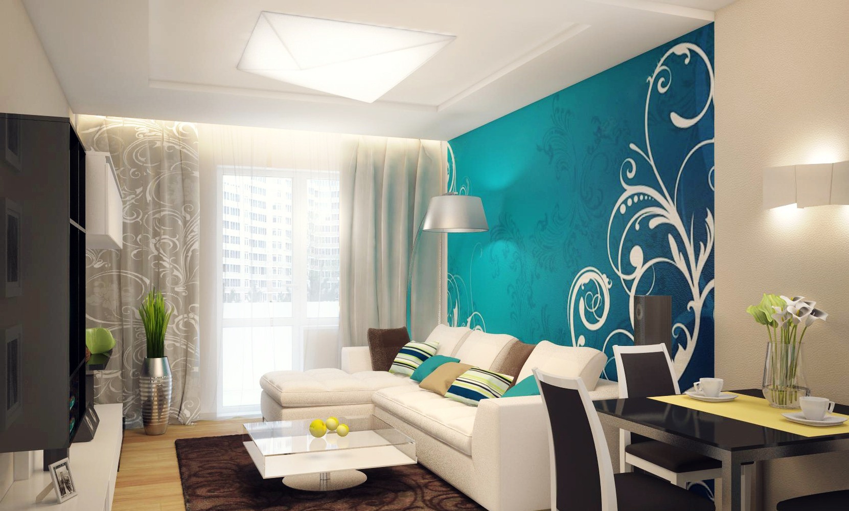 Oddly enough, even in the center of the room a corner white sofa can look relevant. Nevertheless, for small ones, it is preferable to place either close to the corner walls with windows, or with one window at the opposite wall. Thus, the space will visually expand.
