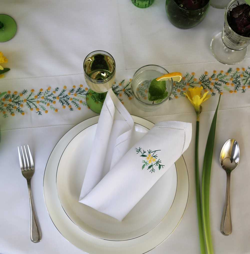 On the plates you can put green twigs, it will look beautiful