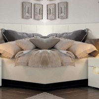 - No need to be afraid to use only one table. Many people believe that it is imperative to put bedside furniture on both sides of the bed in order to achieve symmetry. But this is not a prerequisite, one table creates an unusual design of the room.
