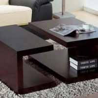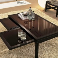 A coffee transforming table occupies an important place among the elements of the living room furniture. A small compact system can turn into a full-fledged table for feasts with guests. When assembled, it looks like a comfortable and small table for storing letters, a remote control from the TV and many other useful details. The volume of such a table in expanded form forms a solid surface for holding a buffet with light snacks.
