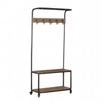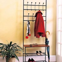 Banquet racks are popular. The design includes a clothes hanger, a comfortable seat, and a shoe rack underneath. This option is suitable when there is an additional closet in the hall where shoes are stored.