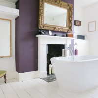 - A small room with bright walls gives off a marble fireplace. Furniture choose high.