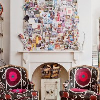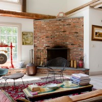 If they prefer to gather here, next to it, an armchair and a sofa are set against each other, between which a small table is placed. Fifty centimeters from the fireplace place a bookcase or bedside table.