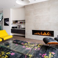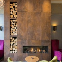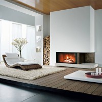 Style Modern Looks great in a square living room, where a fireplace is installed along the wall or in the corner. It can be performed with irregular and original forms. Design can be ordinary, as well as with additional stained-glass windows.