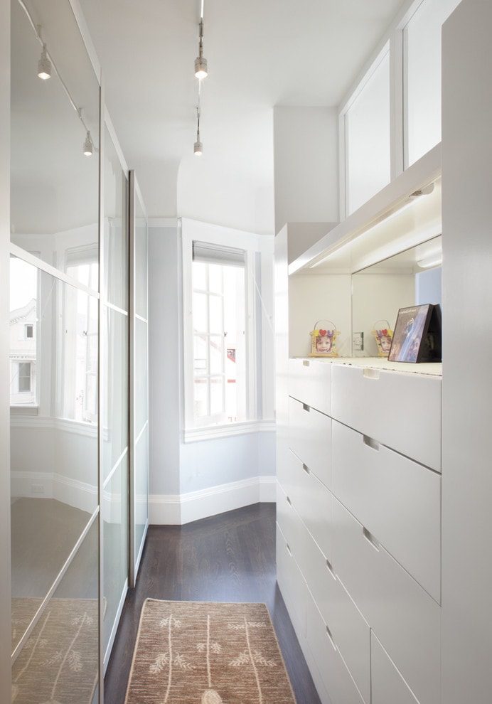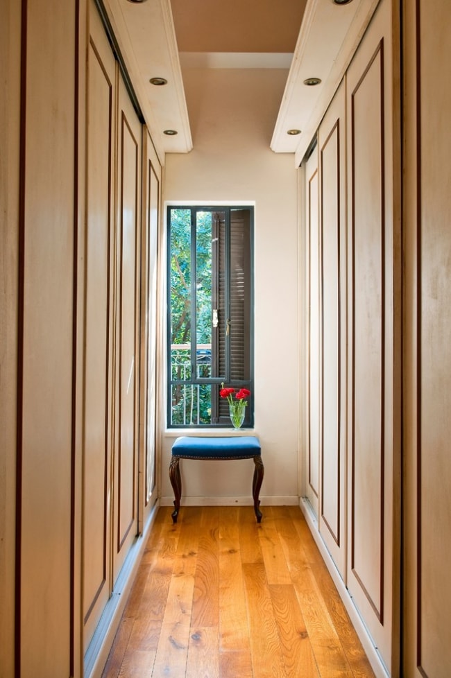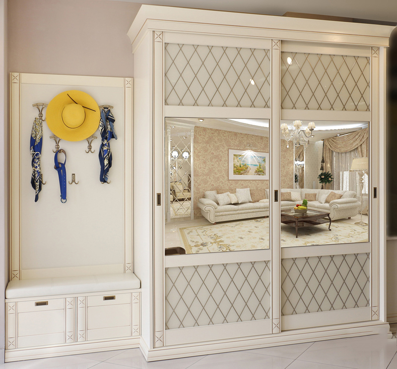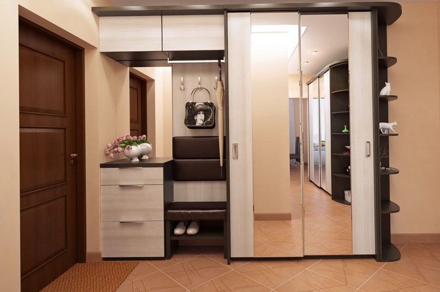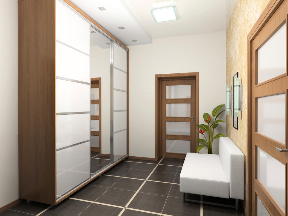 Mirrored cabinet doors will make the hallway visually spacious