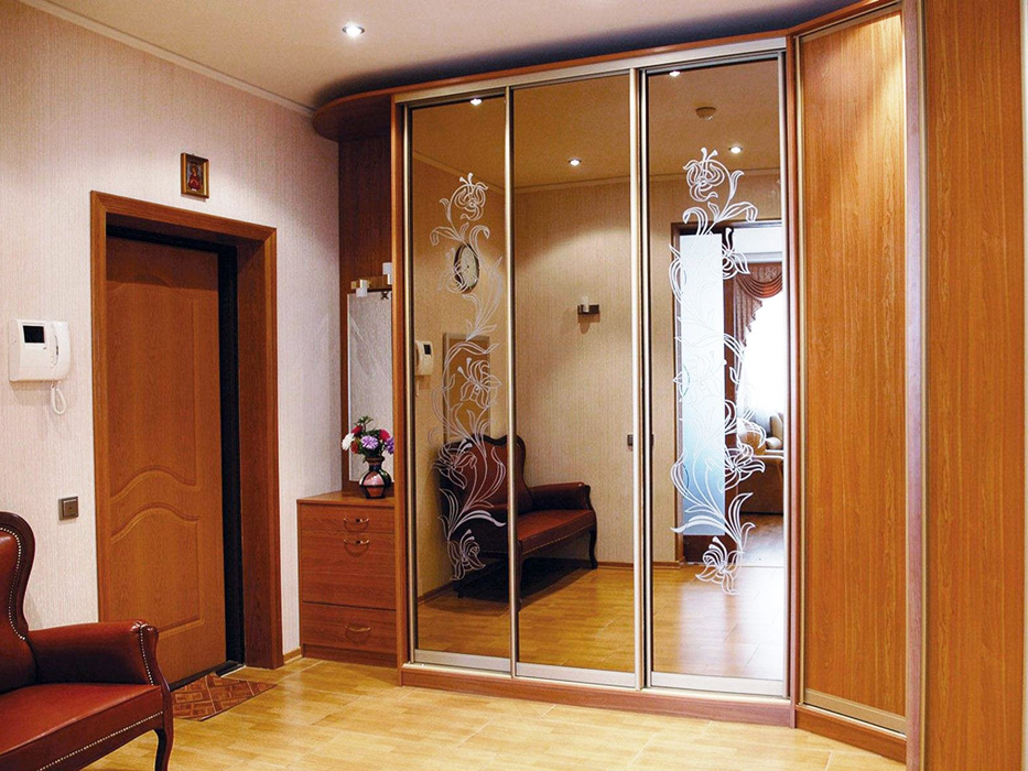 Any cabinet, corner, radius, built-in closet will become a central element in the design of the room. With it, you can decorate the situation, completely ruin it. For the interior of the hall to benefit from the installation of the cabinet, you need to know a few tricks of its application. In small rooms, a cabinet with fully mirrored doors fits perfectly. The mirrored surface of the coupe effectively expands the space. Visually, the room looks larger, more comfortable. Mirror surfaces are relevant in the styles of hi-tech, classic, minimalism.