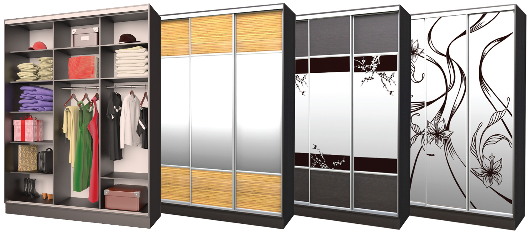 Built-in and self-contained sliding wardrobes are gaining more and more popularity due to their functionality and spaciousness with relatively small dimensions. Such a storage system safely replaces hallway furniture, a dressing room in the bedroom or becomes a universal storage system in a one-room apartment. The richness of the choice of facade decoration is not only an interior decoration, but also the opportunity to emphasize its style. It makes no sense to buy the first “closet” closet with a plain design and endure inconvenience for years, if you can order a built-in or ready-made one that suits all parameters.