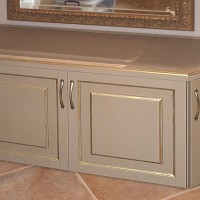 Advice! If it is not possible to buy goods in full accordance with the design of the room, the cabinet will be slightly upgraded on its own. By changing the standard boxes to wicker baskets, you get a piece of furniture for the Provence style.