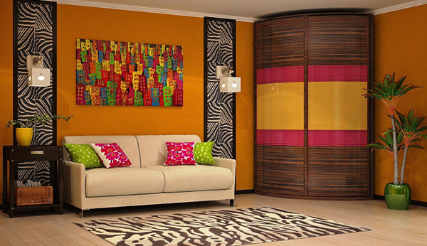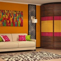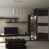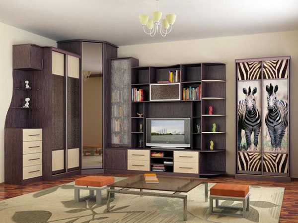 Catalogs position corner headsets that will ideally fit into the created furniture ensemble. It is recommended to evaluate the benefits of a compartment, where sliding wardrobes can completely replace the living room. You do not have to purchase prefabricated furniture. Modules can make the living room, the transition to the hallway, creating a single zone. If necessary - hide communications, defects of repair or construction.