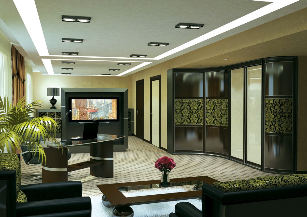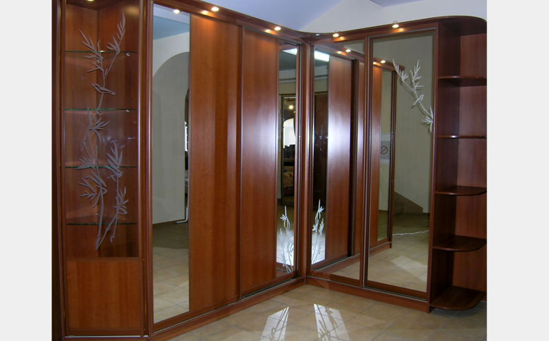 In such a living room, where the mirrors are decorated with a sandblasting ornate pattern, the necessary amount of upholstered furniture with the appropriate finish of wooden elements will fit. The decor of the mirror doors will help harmoniously transform and visually expand the space so that the room matches the interior design. Models of peculiar pencil cases with sliding doors are installed in almost every house or apartment.