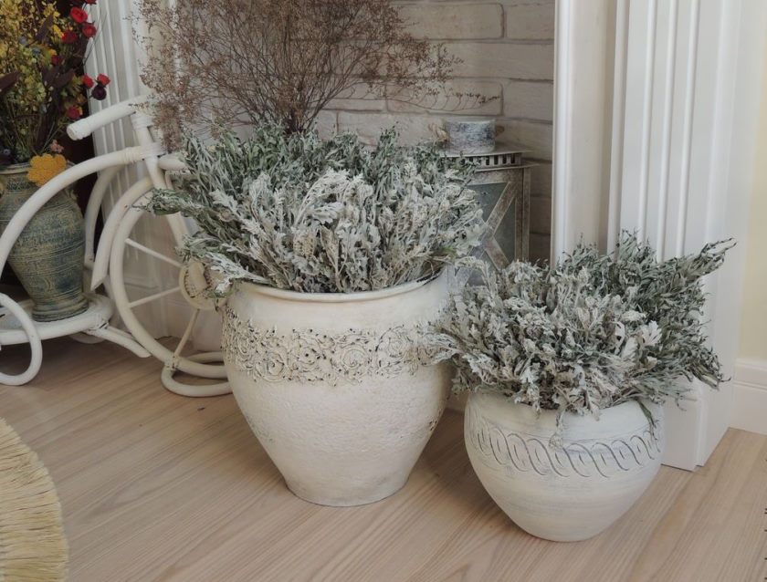 Floor vases are designed for rooms with a large area and high ceilings. Due to the fact that the floor vases are large, in a cramped space they will look “pinched”, absurdly.