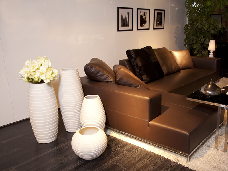 Of course, large floor vases are most suitable for a spacious room: in a small one they will only clutter up the space and, contrary to desires, it will seem uncomfortable. However, with the help of a competent, experienced designer, you can even solve such a problem.