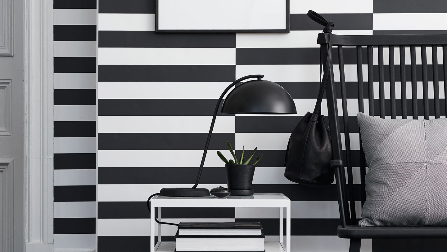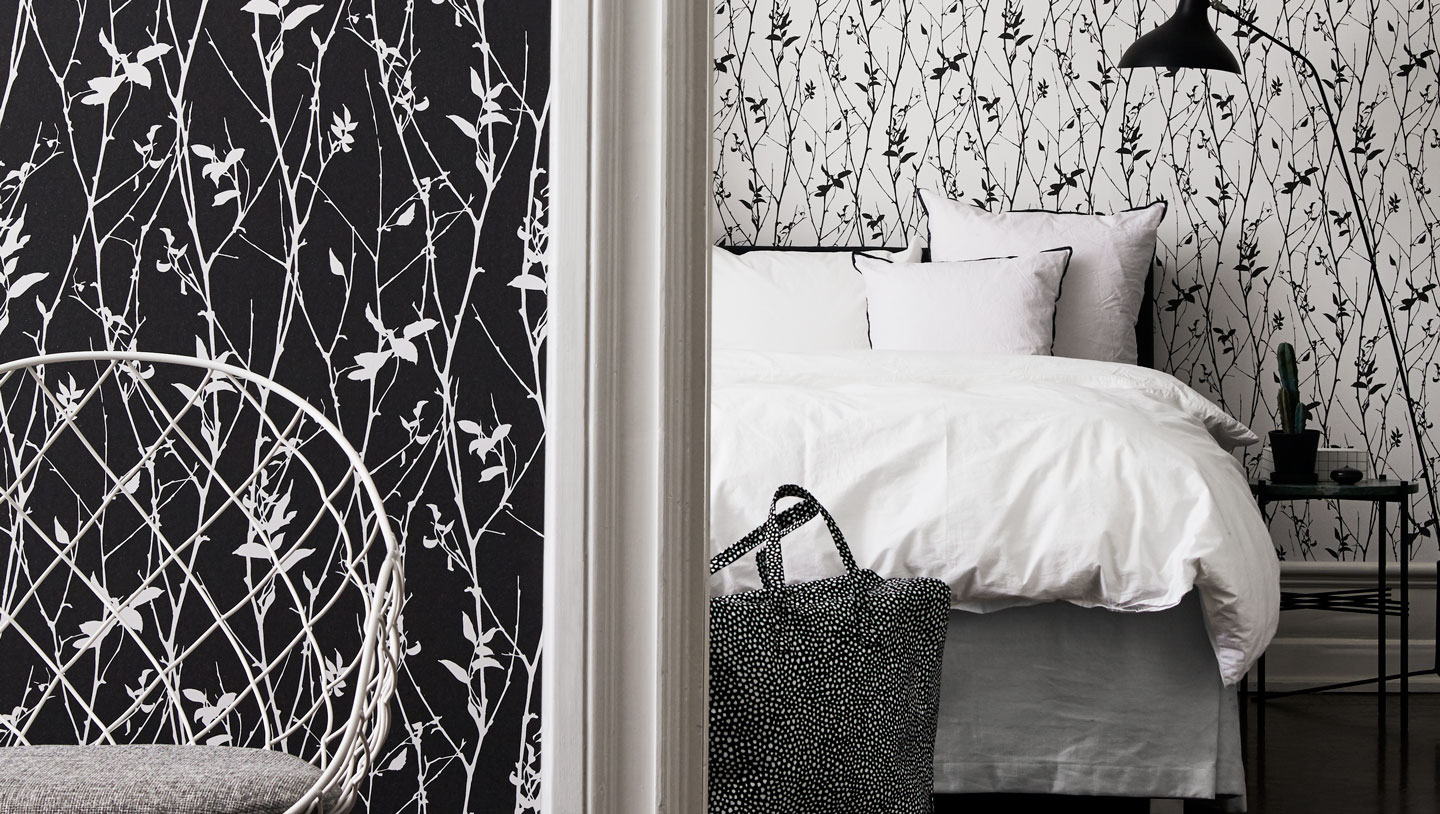 Bright rooms with black wallpaper