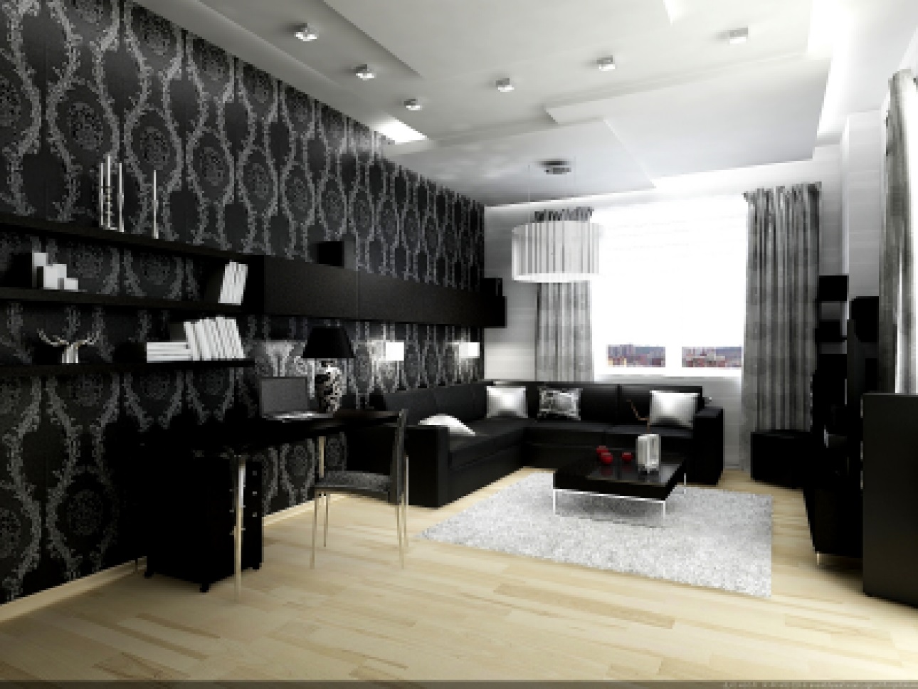 Beautiful room with black wallpaper