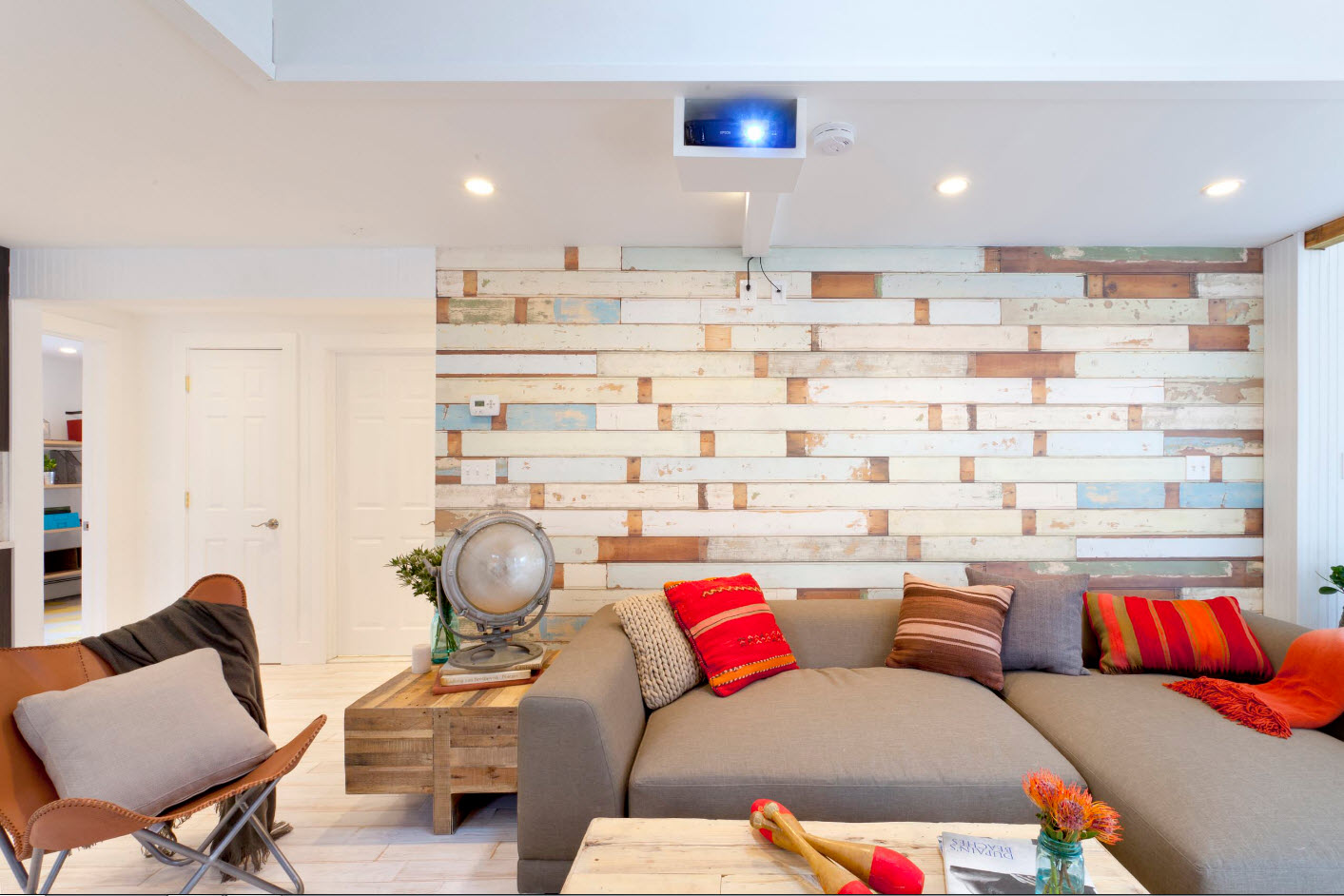 The accentuation of the wall can be without exposure or installation - just a spectacular backdrop for a multi-seat group of sofas.