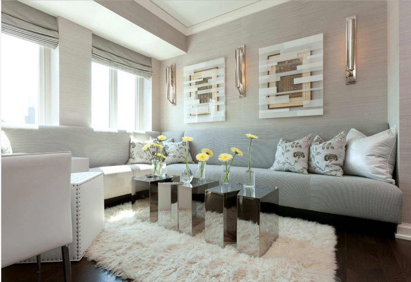 - Neutral mesh or striped pattern, with small or large elements resembling monograms, floral ornament - into the living room.