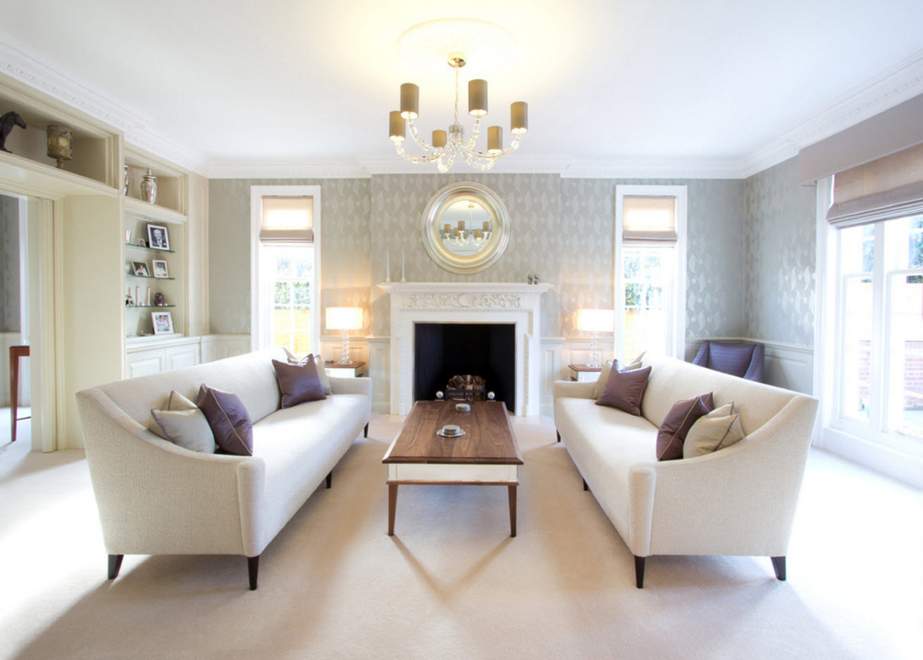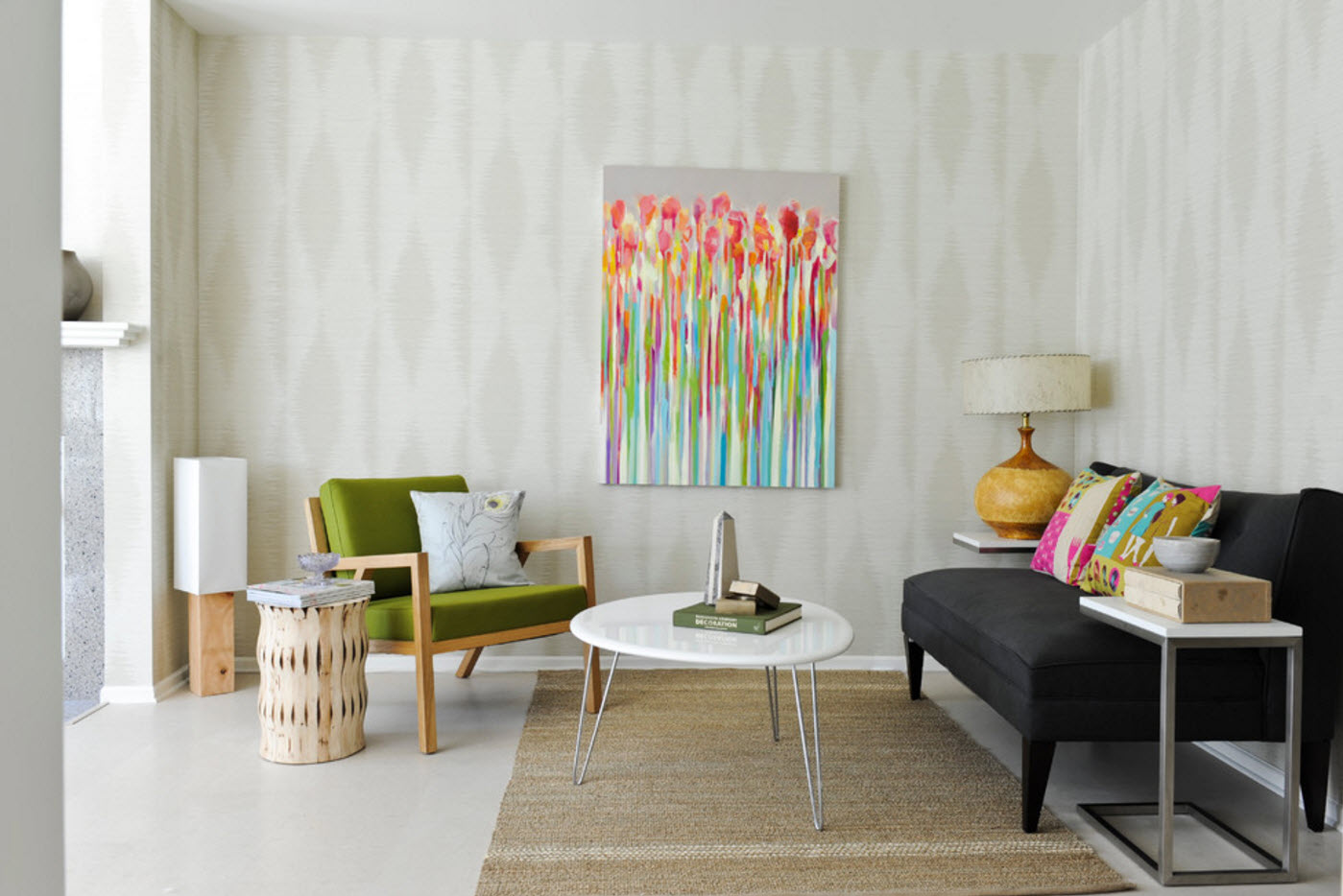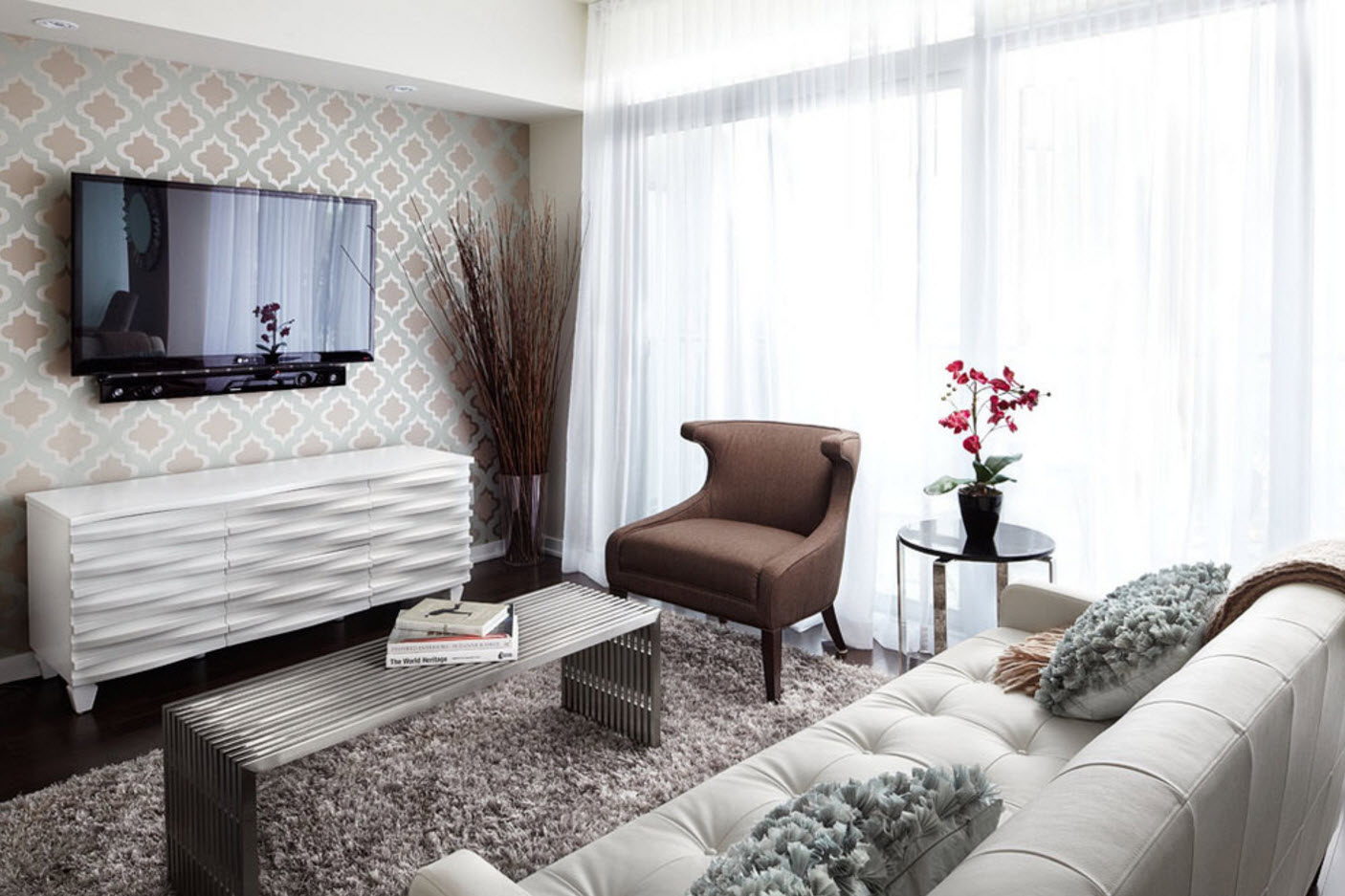 In the living room, all types of wallpapers can be used for full or partial wall decoration.