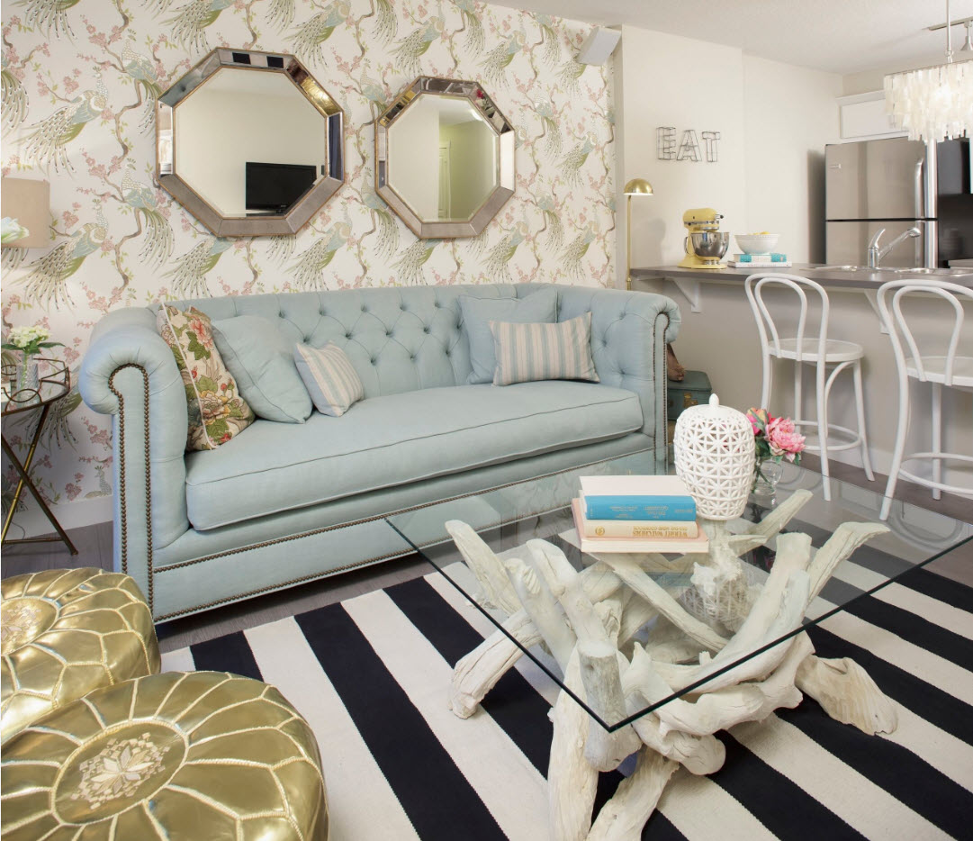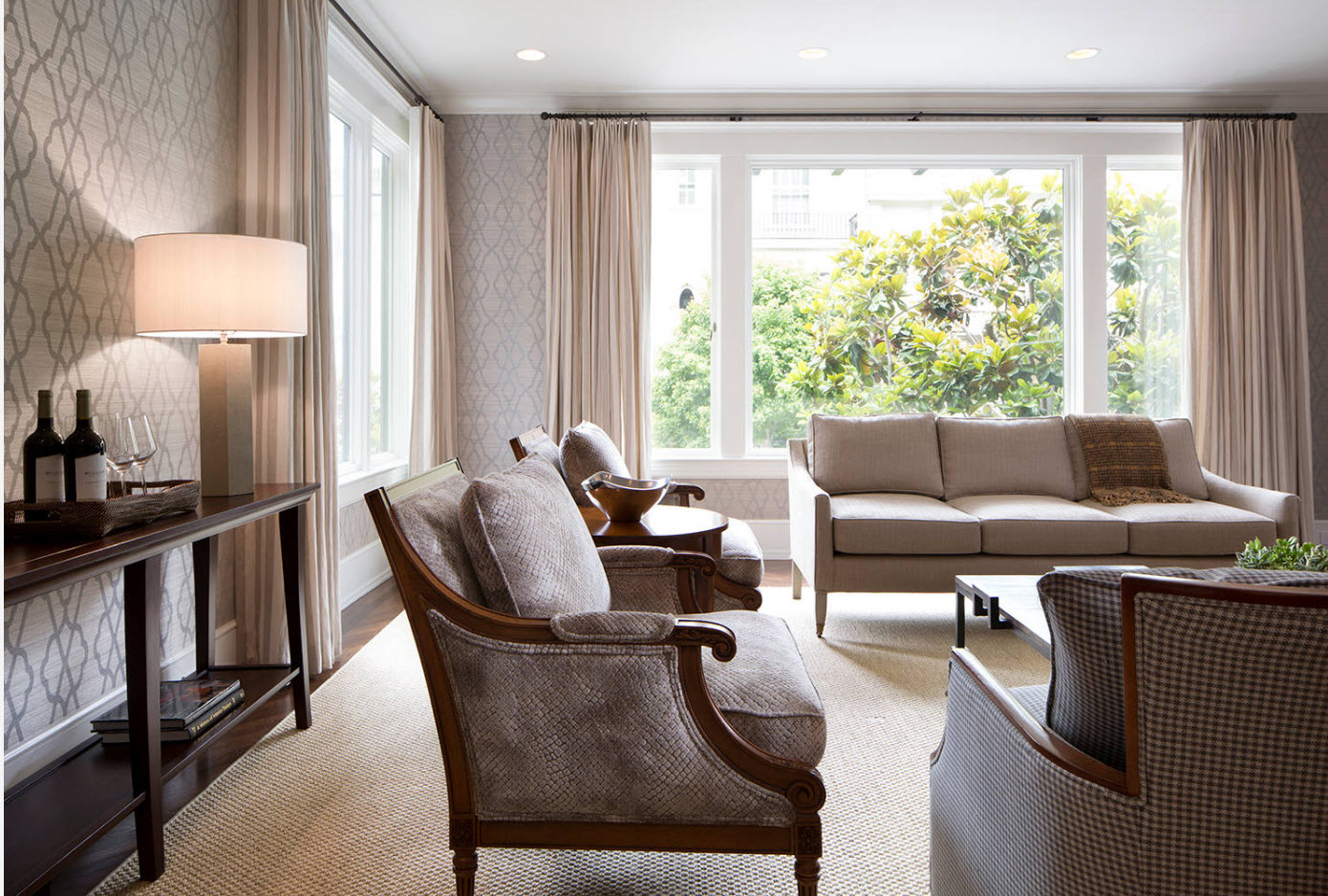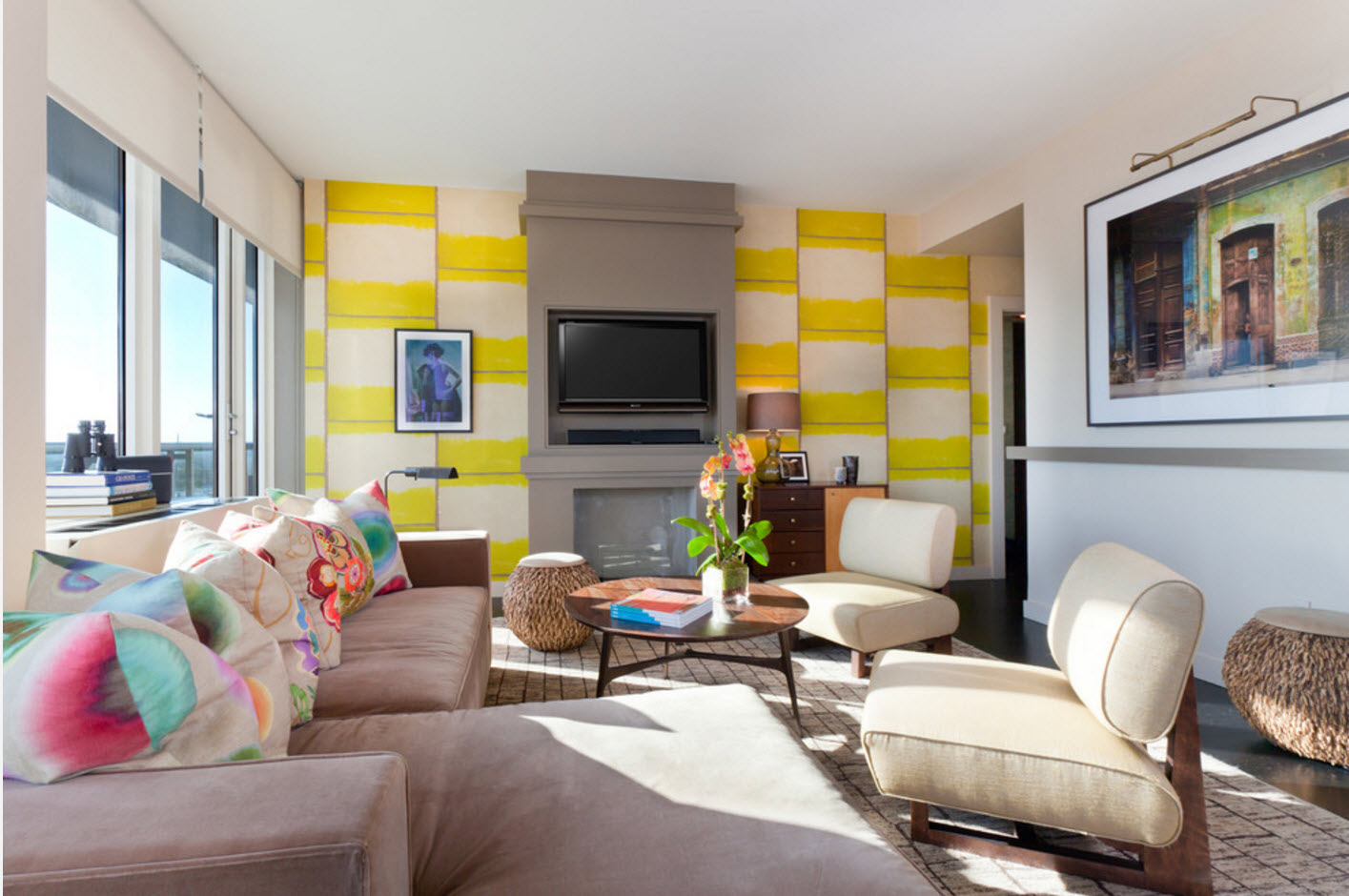 In the living room, all types of wallpapers can be used for full or partial wall decoration.