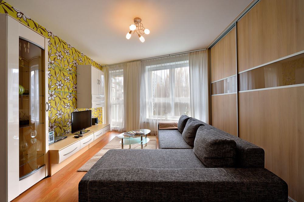 | Geometry | Ratio the walls should also be considered. | Fix long narrow premise will be able to fix wallpaper sticking two kinds. For example, smaller walls glued light monophonic wallpaper. At the same time, they must go to long corners. The rest of the space is filled wallpaper unobtrusive patterned. |