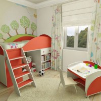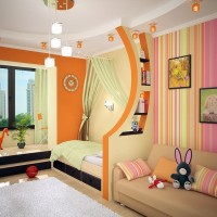 The design of one of the walls with photowall-paper in combination with harmonizing curtains will also help to achieve balance. If the child is calm and balanced, do not overload the room with bright green, orange and pink shades. If, on the contrary, parents want to add energy and optimism to the child, then contrasting combinations of pink and brown, white with orange, blue with green, blue and beige will be a good solution.