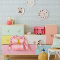 By combining different wallpapers, you can zonate the space into the play area and the relaxation area, change the proportions of the room visually, expanding it or vice versa, narrowing it, to hide room defects.