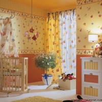 - For a very little girl up to a year, peach, pink, light yellow tones, with a fine pattern and a pleasant shade, are well suited. Indeed, at this time, the child sleeps a lot, so it is so important that the atmosphere in the room is cozy and comfortable.