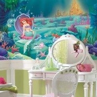 Tip: For the little girl’s playing area, wall murals with a fairy tale plot — Barbie, Disney heroes, princesses, and the little mermaid — are suitable. If a girl has non-standard thinking and tastes, she should not be denied, for example, if she wants photo wallpapers with wild animals, dinosaurs or airplanes. Let her show her personality.