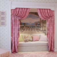 A worthy option for transforming the premises will be paintings with castles, kingdoms. If such pictures are combined with original furniture in the same direction, the result will be the design of a room in the style of a princess.