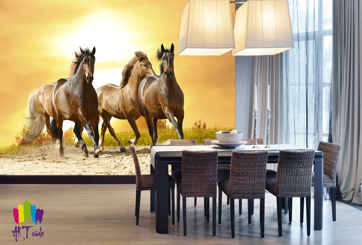 It is also worth noting that the choice of scenes and drawings is simply huge, in addition, you can make an image on an individual order and print on your wallpaper your travel photo or your own picture.
