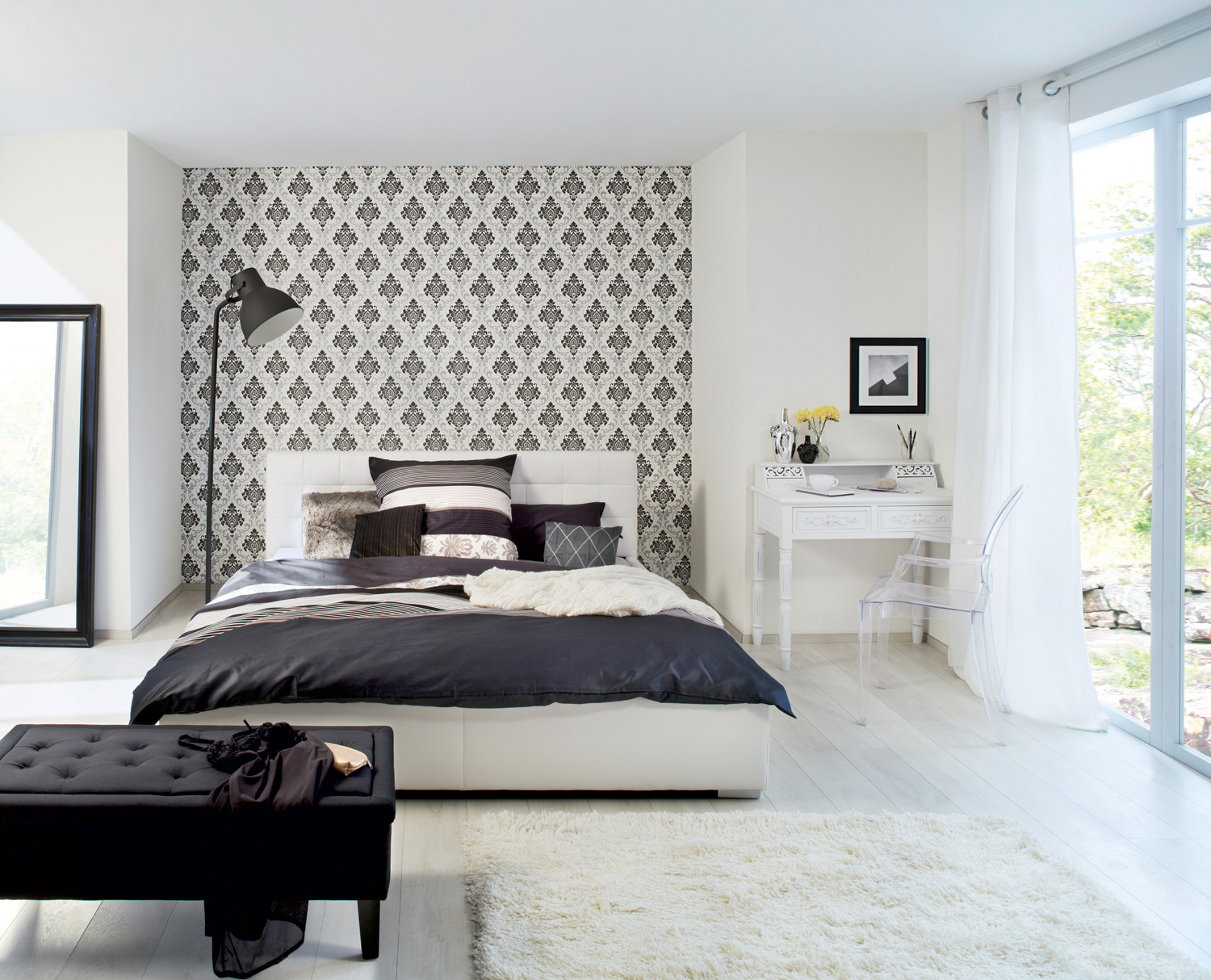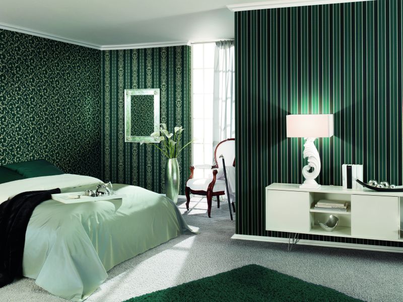 Original spatial illusions open doors to another world or change the configuration of a bedroom. The contrasting striped wallpaper of the zebra type also possesses this property, when they run horizontally on a narrow end wall and vertically on a large wall.