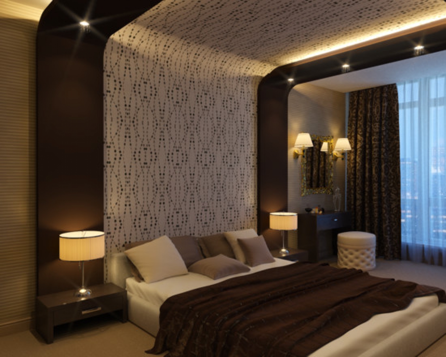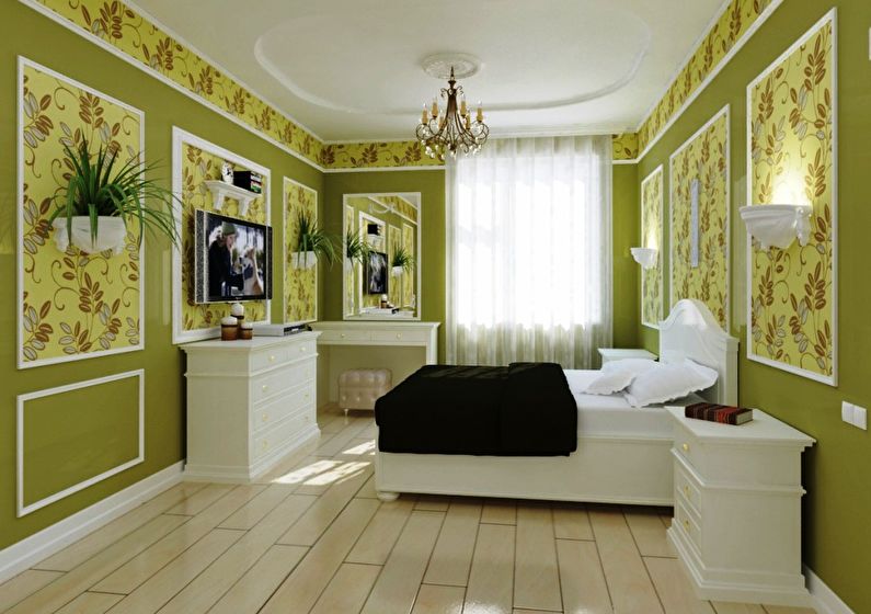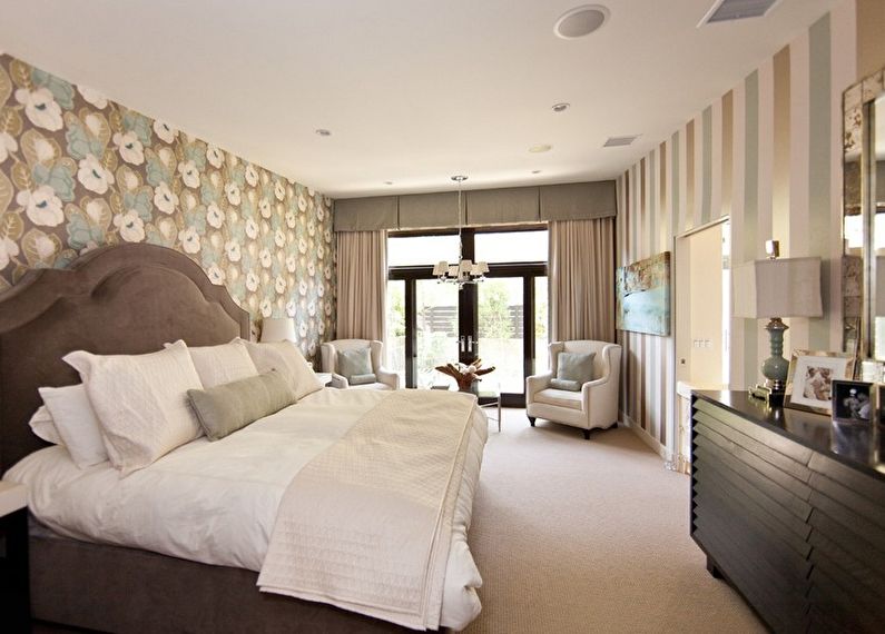 The choice of wallpaper largely depends on the style of the bedroom interior.