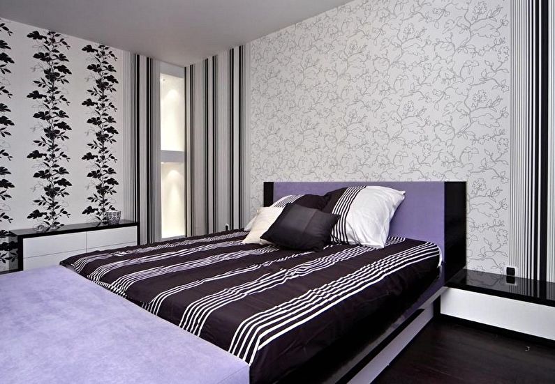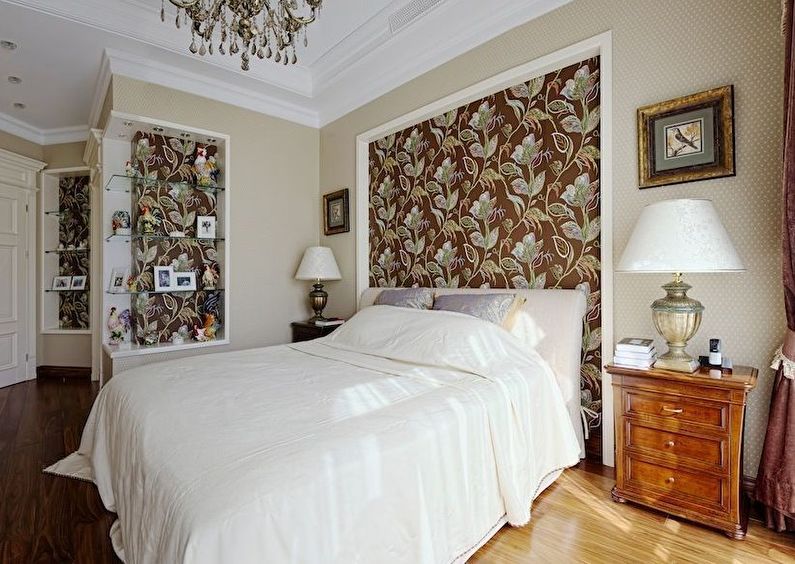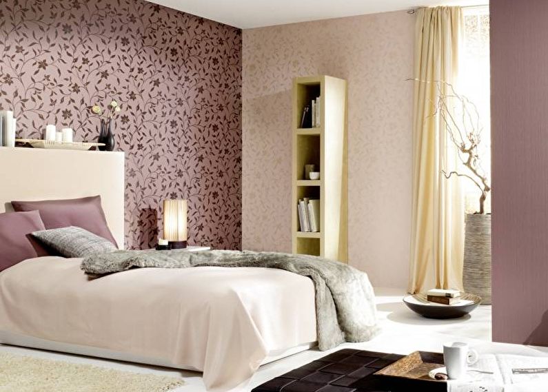 The combination of two types of wallpaper suggests itself when there is a niche in the bedroom