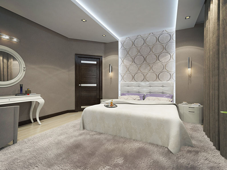 Wallpaper darker than the main tone of the walls, great for zoning the space of the bedroom