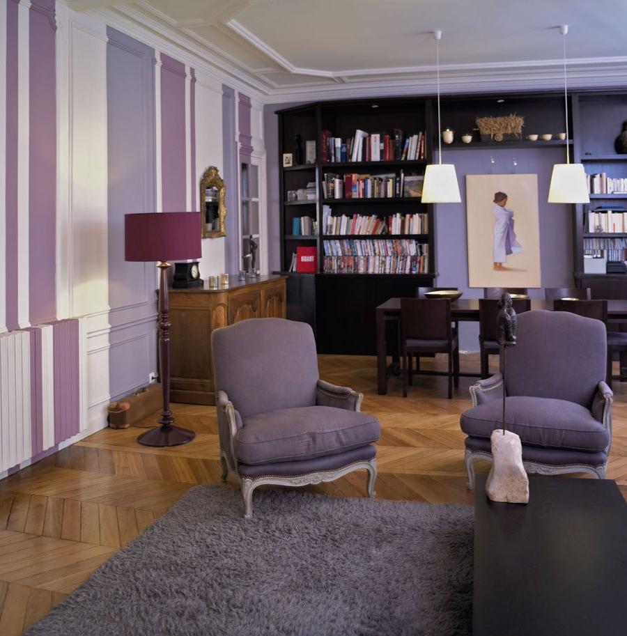 If the owner wants a home decorated in soothing colors, it is preferable to use lilac, eggplant, purple. They fit perfectly into the decor of the bedroom. When repairing the living room, kitchen, you can use orange, blue, it is allowed to use different wallpapers in the interior.