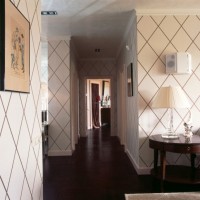 - A narrow passage can visually expand the wallpaper with horizontal stripes.
