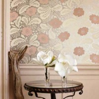 Traditionally, flowers are placed on the wallpaper. Inflorescences can be large - on the floor of the wall or represent a small repeating pattern. The classic option for decorating the walls in the corridor is with a diamond-shaped pattern with monograms, curls and floral arrangements.