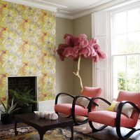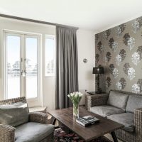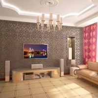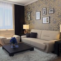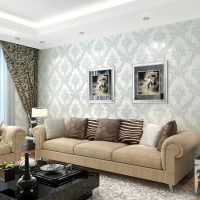 Now about the popular printed wallpaper. In order not to create a heavy atmosphere in the living room, it is better to combine printed wallpapers with plain canvases. Do not forget about harmony here.